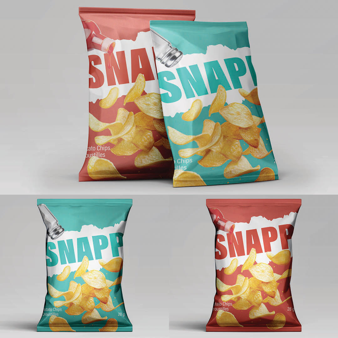 A bold, crunchy identity for Snapp Chips, made with real potatoes for real flavour. This project highlights the brand’s commitment to simple, honest ingredients through playful visuals and clean, modern design.